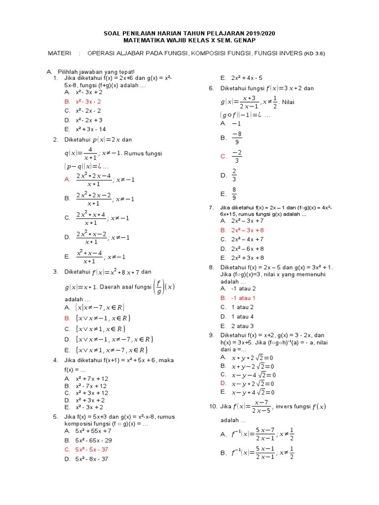 Soal Operasi Aljabar Pada Fungsi / 3 2 Operasi Aljabar Pada Fungsi Dunia Matematika : Siswa mengerjakan soal latihan halaman 6 nomer 1 pada lks latihan 1.